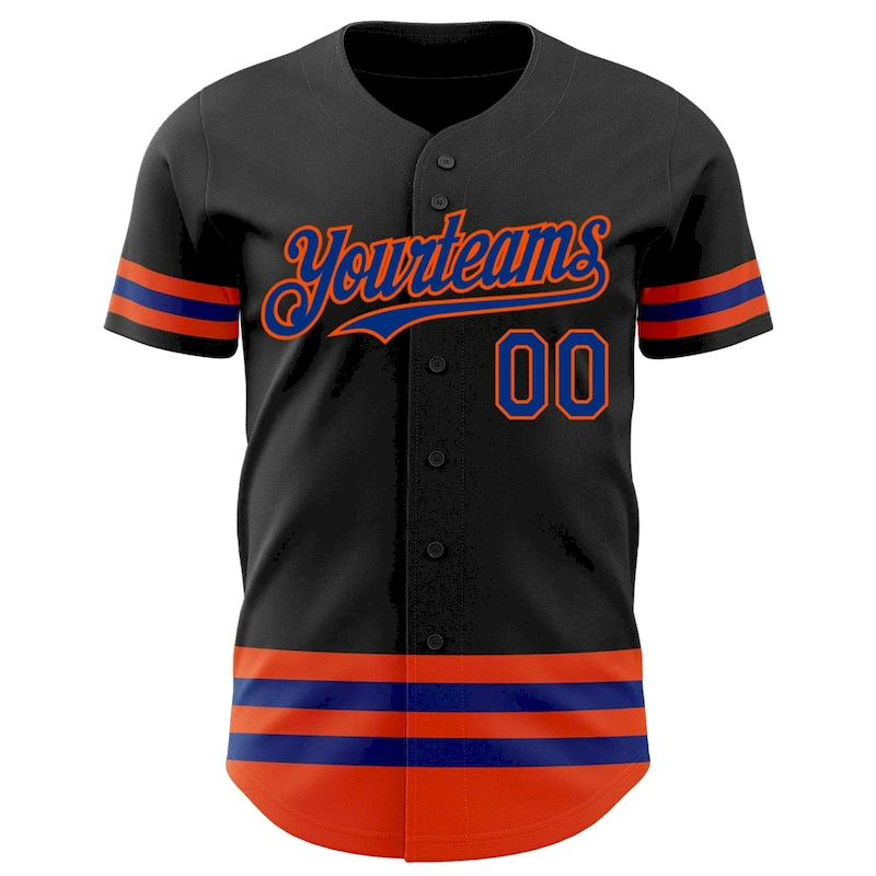 Custom Black Royal-Orange Line Authentic Baseball Jersey