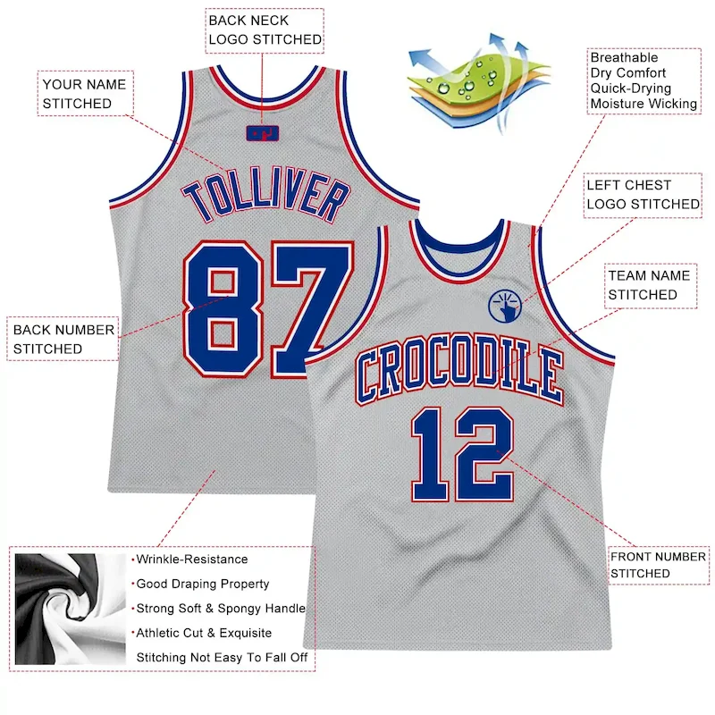 Custom Gray Royal-Red Authentic Throwback Basketball Jersey