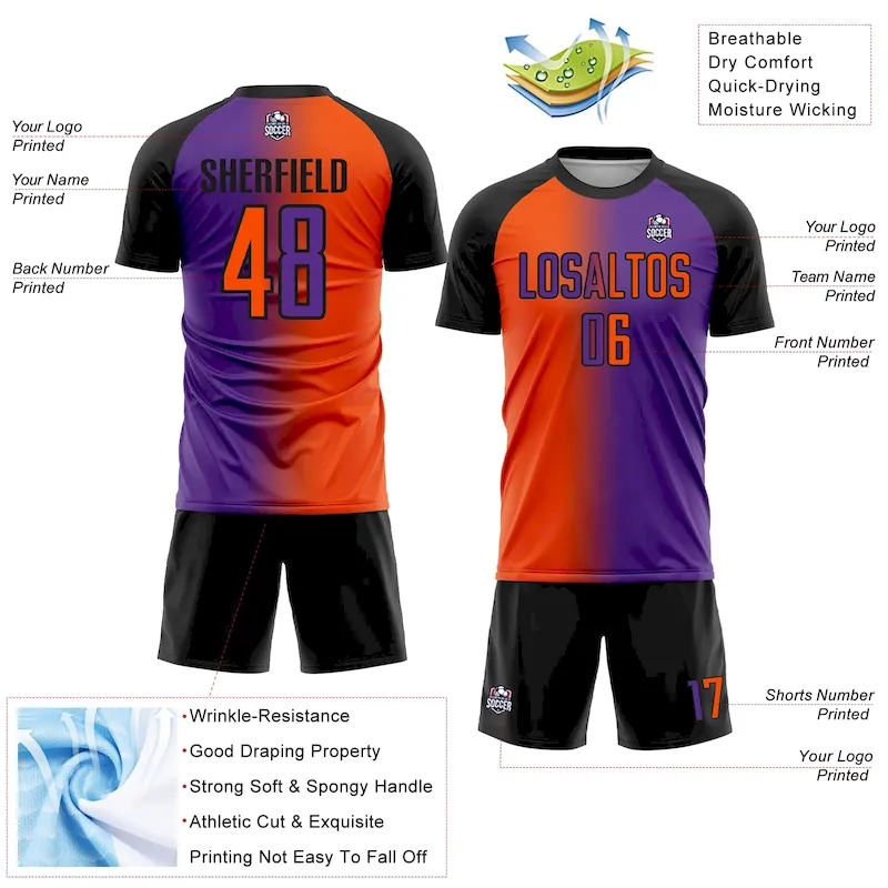 Custom Purple Orange-Black Sublimation Gradient Fashion Soccer Uniform Jersey