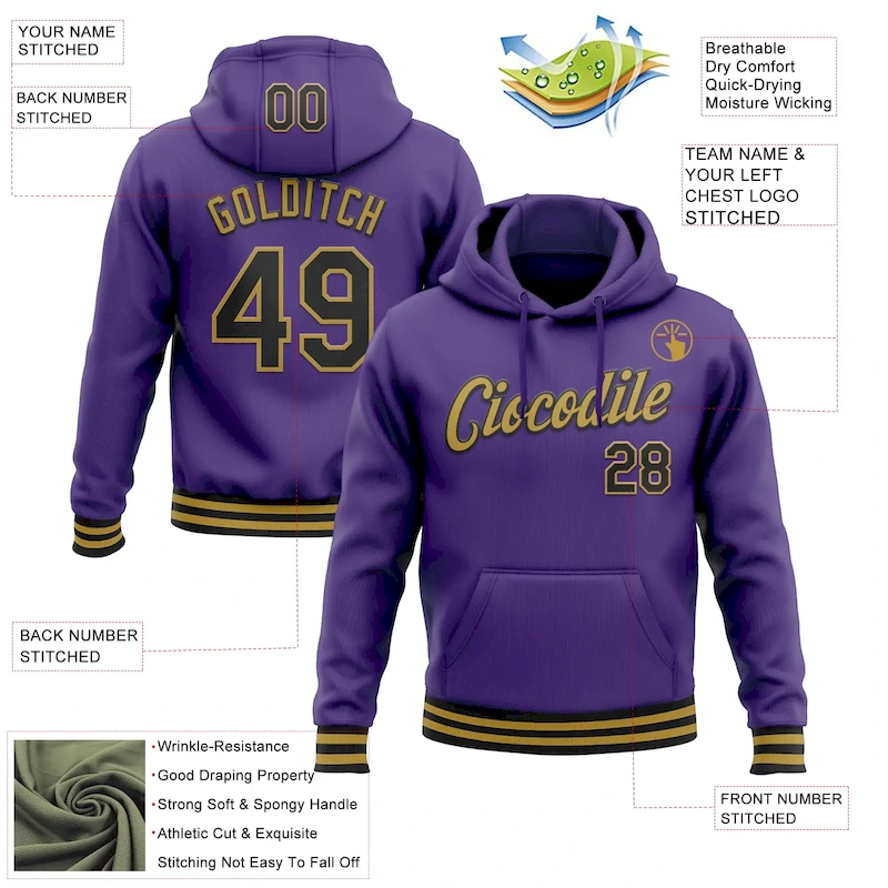 Custom Stitched Purple Black-Old Gold Sports Pullover Sweatshirt Hoodie