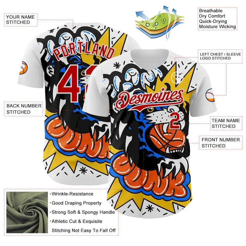 Each ® tailored baseball jersey is meticulously personalized with the following features:Material: 100% polyesterJersey with stitched tackle twill name & numberMoisture-wicking fabric has spongy handle, good draping property and elasticity as well as good dimensional stability and wrinkle-resistanceBreathable & quick-dryingAthletic cut & exquisite stitching not easy to fall offRounded droptail hemFull-button frontTagless collar offers clean comfortMachine wash, do not tumble dryImportedNon-alcoholic available for wiping or washing